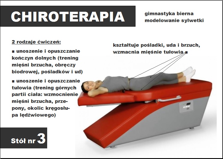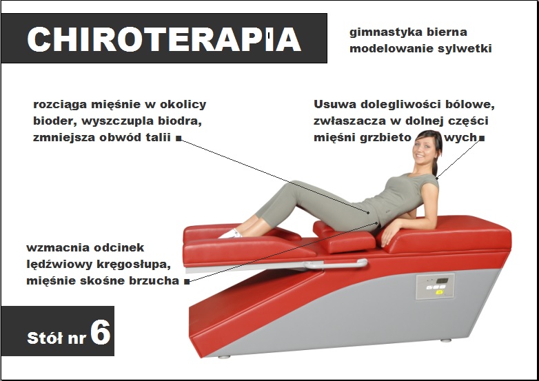 Zabiegi odbywają się we własnej bazie zabiegowej, znajdującej się w budynku Sanatorium na parterze oraz 4. piętrze (chiroterapia).